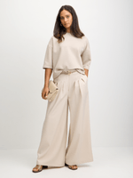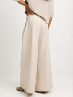 Elevate your wardrobe with our natural wide-leg suit pants from Exact! These stylish pants features a pleated design, wide leg fit, side pockets, and belt loops. Pair with your favorite top for a chic look.