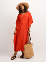 Embrace vibrant style with this sunny orange kaftan. This kaftan features a relaxed fit and eye-catching color, it's perfect for beach days or cocktail hour. Wear over your costume and pair it with sandals and sunnies for a laid-back vibe.