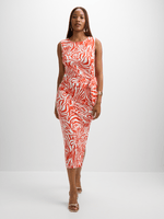 Elevate your style with our orange and white zebra print dress. Featuring a trendy front tie detail, side slit, and midi length for a trendy look. Perfect for any occasion, pair it with your favorite accessories for an effortless outfit.