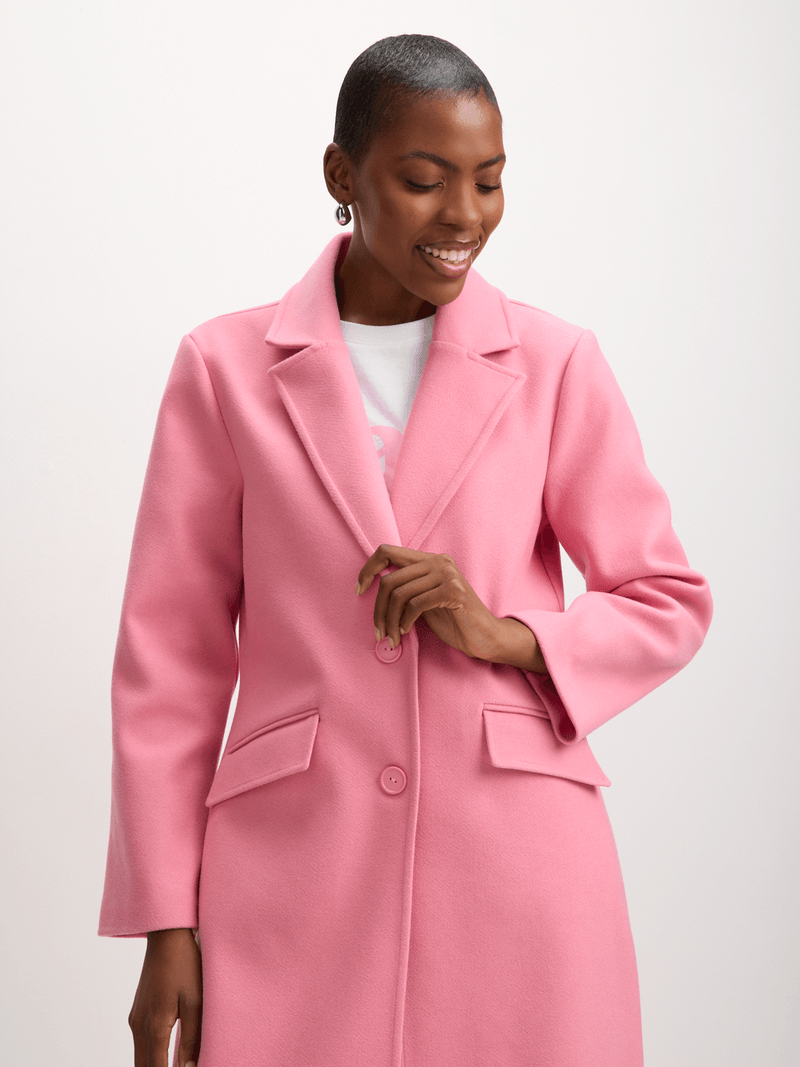 Step out in style with this beautiful melton coat from Exact! Made from melton fabric, this coat features long sleeves, button closure, and faux flap pockets. Perfect for layering over your fave look this season.