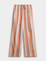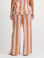 Elevate your casual style with our Exact relaxed pants in a chic multicolour striped print. Made from a soft linen blend, these pants feature an elasticated waist with drawstring, side pockets and a pull-on easy fit. Pair with the matching top for a co-ord look we love.