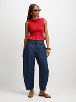 Get ready to turn heads in this stunning red shirred top from Exact. Made from rayon blend fabric, this top features shirred detailing for a flattering fit. Perfect for any occasion, whether you dress it up or down.