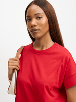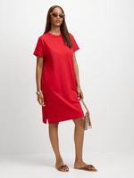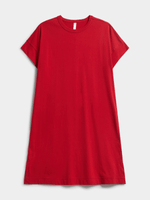 Enjoy the comfort and style of this red t-shirt dress from Exact. Made from single jersey cotton, this dress features a relaxed fit with a round neckline and short sleeves. Perfect for casual days, this dress can be styled up or down.