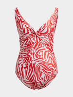 Introducing our new range of swimwear from Exact, this stylish twist front swimsuit in a striking red and white print is just what you need this summer. Designed for comfort and style, this swimsuit features a flattering twist front detail. It is perfect for poolside lounging or beach days, elevate your swimwear collection with this chic piece.