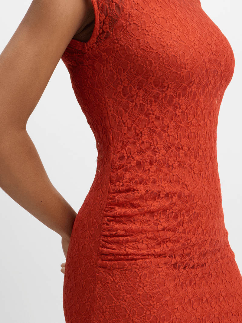 Step out in style with this gorgeous lace dress from Exact! Made from stretch lace fabric, this dress features a flattering fit and flare silhouette. Dress it up with a pair of heels for a night out or down with a pair of sandals for a more casual look.