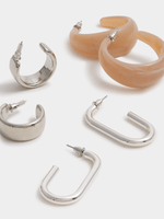 Get ready to add some sparkle to your outfits with these Exact 3-pack earrings. This pack features 2 pairs of silver hoops and 1 resin pair. Perfect for everyday wear or special occasions.