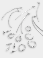 Achieve effortless style with our Exact 9-pack hoop and drop earrings. These earrings feature a mix of stud, hoop and drop designs to elevate any outfit. With a versatile silver finish, these earrings are the perfect accessory for any occasion.