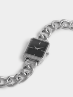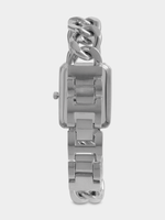 Make a statement with this square face metal chain link watch in silver. This watch is a timeless accessory that adds a touch of sophistication to any outfit.