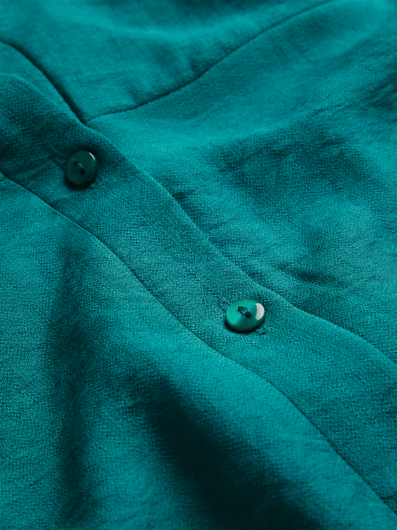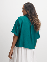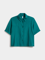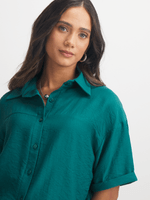Step out in effortless style with our teal boxy shirt. Made from a comfortable rayon blend fabric, this versatile top boasts a relaxed fit that can be styled in multiple ways. Featuring a button-up front and short sleeves, it's the perfect addition to your wardrobe.
