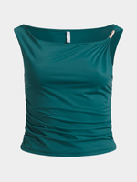 Get ready to elevate your wardrobe with this chic draped top from Exact. Made from a soft touch fabric, it features a flattering silhouette and fun gold metal trim detail on the shoulder. Pair it with the matching pants for a co-ord look we love.