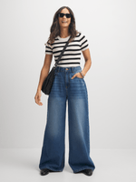 Stay stylish in our white and black striped knitwear. Made from a soft and cosy viscose knit, it features a classic stripe design that's perfect for any occasion. With short sleeves and a comfortable fit, this top is a versatile addition to your wardrobe.