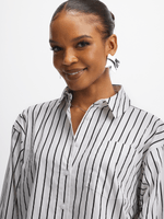 Elevate your wardrobe with this Exact white and black striped shirt. Crafted with 100% cotton poplin fabric for comfort. Versatile and stylish, this shirt is perfect for any occasion.