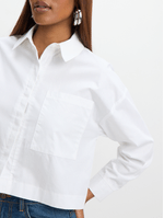 Get that effortlessly chic look with our Exact white cropped boxy shirt. Made from poplin cotton fabric, featuring a boxy fit and large chest pocket, this shirt is perfect for elevating any casual outfit. Pair with jeans and heels for a chic look.
