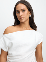 Elevate your style with our Exact draped top. Made from a rayon blend fabric, this versatile top features a flattering draped design, ruched side, and asymmetrical hem. Perfect for any occasion, simply pair with your favorite bottoms for a chic look.