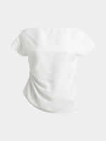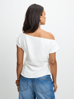 Elevate your style with our Exact draped top in a chic white hue. Made from a rayon blend fabric, this versatile top features a flattering draped design, ruched side, and asymmetrical hem. Perfect for any occasion, simply pair with your favorite bottoms for a chic look.