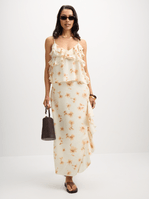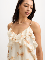 Feel carefree and beautiful in our white frill cami top from Exact! This top features a stunning print, frill details, and adjustable straps. Pair it with the matching skirt for the perfect boho look, dress it up with a pair of heels or down with sandals.