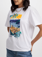 This Exact white graphic print t-shirt is effortlessly chic and stylish. Made from single jersey cotton for all-day comfort. Features a cool postcard graphic print, crew neck and short sleeves. Perfect for a casual and trendy look.