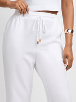 Kick back and relax in our Exact white joggers. Made with a linen look fabric, these joggers feature adjustable toggles for a chic look, side pockets and an elasticated waist for an easy fit. Perfect for a casual day out.