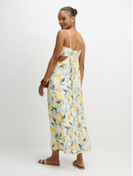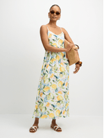Enjoy the sunny days in style with our white lemon print strappy sundress. Made from viscose fabric, featuring side cut-outs and adjustable straps for a perfect fit. This dress is ideal for all your sunny day adventures.