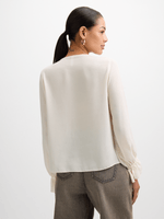 Flutter sleeves with elasticated cuffs.