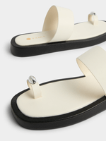 Step out in style with our ecru toe post sandals from Exact. These sandals feature one wide strap and a toe post with gold trim. Add a touch of flair to your outfit with these must-have sandals.