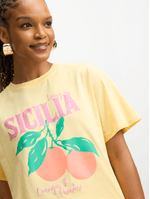 Make a statement with our fun yellow graphic print t-shirt. Crafted from comfortable single jersey fabric, features a round neck and short sleeves. Perfect for a casual and trendy look.