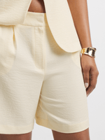 Get summer-ready with these butter yellow structured shorts. Made from a linen look fabric, featuring side pockets and front pleat details. These shorts are perfect for any adventure. Pair it with the matching waistcoat for a trendy look.
