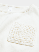 Keep it cute and comfy with this white crochet pocket top. Perfect for playdates or family outings, easy to mix and match with jeans, skirts, or shorts.