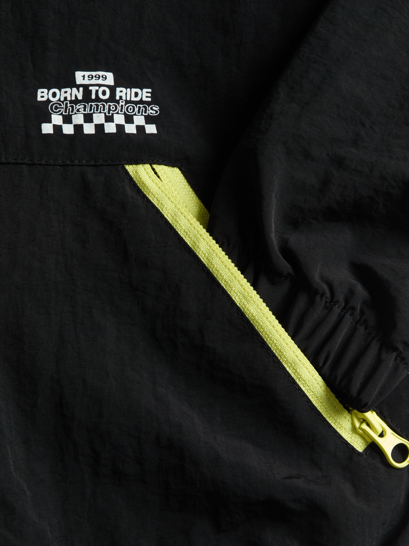 Keep your little man looking cool and casual with our black parka jacket from Exact. Made from a durable nylon blend, this jacket features a sleek design, adjustable hood, and side pockets for all your essentials. Perfect for any outdoor adventure!