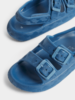 Step into summer with these vibrant blue pool sliders from Exact. These slides are comfortable, stylish, and easy to slip on and off. Enjoy the pool or beach with these fun and durable sliders.