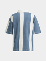 Elevate your little one's style with our Exact boy's blue and white striped golfer. Made from 100% cotton fabric, this golfer features a graphic print, vertical striped, short sleeves, and collar with button up lapel. Keep your little one looking sharp.
