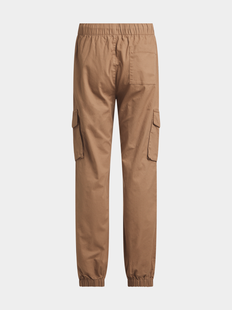 Our Exact boy's taupe utility pants are a must-have for your little one! Made from durable cotton twill fabric with an elasticated waist and drawstring for a comfy fit. Features convenient utility and back pockets, and elasticated cuffs for a trendy look. These pants are perfect for any adventure!