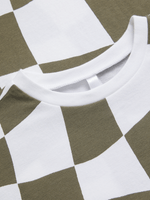 Keep your little one standing out in style with this fatigue and white checker board print t-shirt. Made from comfortable cotton fabric, this tee is perfect for any casual occasion. Pair with jeans and sneakers for a day filled with adventure.