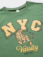 Keep your little one standing out in style with this trendy green graphic print t-shirt. Made from comfortable cotton single jersey fabric, this tee is perfect for any outing. Pair with jeans and sneakers for a day filled with adventure.