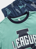 Get your little man ready for a good night's sleep with this adorable graphic print sleepwear set. Made from soft cotton, this set features a graphic print top and dino printed shorts. Perfect for lounging or snoozing.