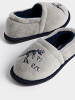 Step into cosy with these cool dinsosaur slippers. Featuring a fluffy fabric, dinosaur print, and stokie design. Pair with the matching pj set for a cute look.