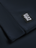 Ribbed crew neck, sleeve cuffs and hem.