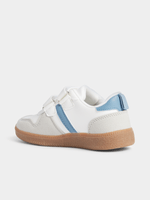 Get your little one ready to hit the playground in style with these white and blue sneakers. Featuring a padded inner for comfort, as well as velcro straps for an easy fit. Perfect for active little ones.