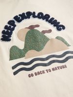 Keep your little one standing out in style with this white graphic print t-shirt. Made from 100% cotton fabric, this tee is perfect for any casual occasion. Pair with his favorite denim and sneakers for a day filled with adventure.