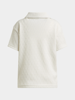 Elevate your little one's style with our Exact boy's white textured t-shirt. This johnny collar tee features a textured fabric, collar, and short sleeves. Keep your little one looking sharp without sacrificing comfort.
