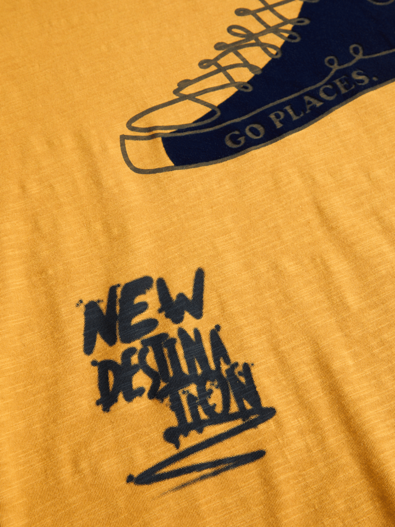 Keep your little one standing out in style with this yellow graphic print t-shirt. Made from comfortable cotton in a cool flocked design, this tee is perfect for any casual occasion. Pair with shorts and sandals for a day filled with adventure.