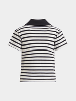 Elevate your little one's style with this chic black & white striped rib top. Made with soft rib fabric, featuring a striped design, black johnny collar and short sleeeves, it's perfect for everyday wear. Mix and match with her fave bottoms for a cute look.