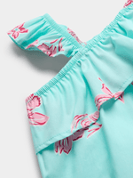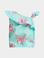 Dress your little one in style with this vibrant blue one-shoulder top. Made from poplin cotton fabric, featuring a one shoulder design, elasticated waist and a fun tropical print. Pair with your favorite bottoms for a fun and stylish look.