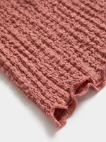 Elevate your little one's wardrobe with this brown textured top. This top features a textured fabric, johnny collar design, short sleeves and ruffle hems. Pair with her favorite bottoms for a cute look.