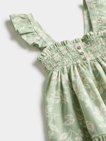 Keep your little one stylish in our sage floral print dress! Made from linen blend fabric, featuring a smocked bodice with buttons, and ruffled straps, this dress is perfect for any adventure.