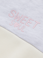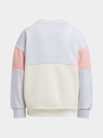 Get cozy in our grey, white and pink colorblock graphic sweat top. Made from brushed fleece for ultimate comfort. This sweat top goes perfect with the matching joggers and some sneakers. Perfect for everyday wear.