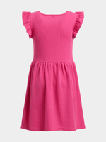 Dress your little one in style with this hot pink rib dress. Made with a comfortable rib fabric, featuring ruffle sleeves and a gathered wasit. Keep your child looking trendy and feeling comfortable all day long.