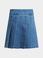 Get your little one ready to hit the court, or playground, in style with this cute and comfy denim tennis skirt. Made with stretch denim fabric, featuring a cute pleated design and side button for easy fit. Keep your mini-me looking trendy without sacrificing comfort.