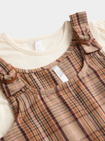 Get your little one ready for any adventure with our natural check pinafore t-shirt set from Exact! Made from cotton rich fabric, this set features a long sleeve top with elasticated cuffs, and pinafore dress with front pockets and adjustable straps. Perfect for any fun-filled day!