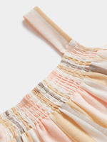 Get ready for sunny days with this natural and orange striped cami top. Made from linen blend fabric, featuring a smocked bust and sleeveless design, this top is perfect for keeping cool. Pair with the matching shorts for a stylish look that's sure to make your little one feel great.